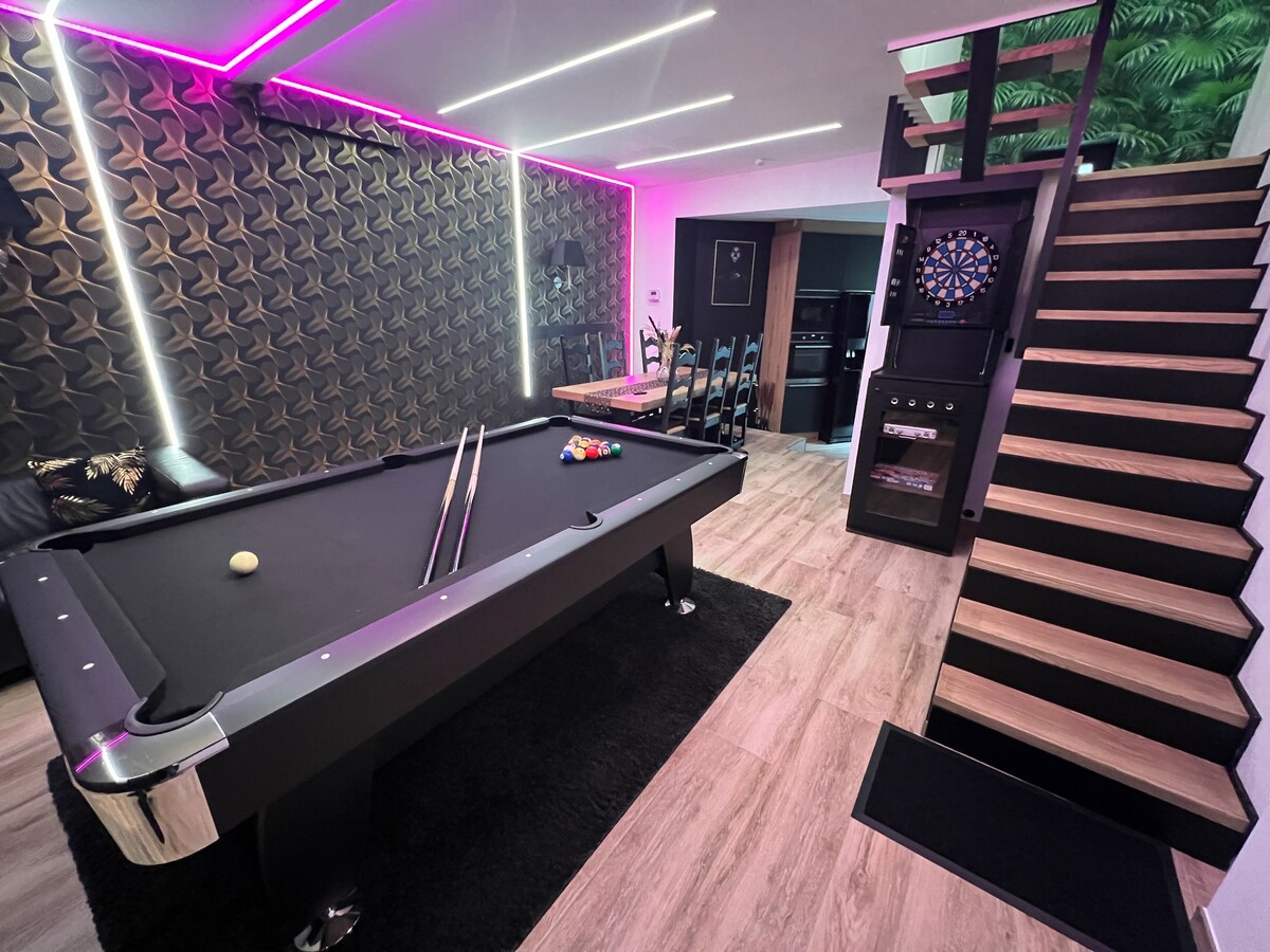 - Hübsche Villa mit allem Komfort, warm und hell mit einer großen Terrasse nach Süden. - Die Unterkunft bietet Platz für 1 bis 6 Personen (2 Schlafzimmer mit Doppelbett + 2 Einzelbetten oder kombiniert zu einem Doppelbett). Das Grundstück ist 1032 Quadratmeter groß. - Ruhig und in der Nähe aller Annehmlichkeiten und Freizeitaktivitäten. -Ein schöner Kamin mit Holzfeuer Eine sehr große Garage Tischtennisplatte Neuer Fernseher mit Netflix