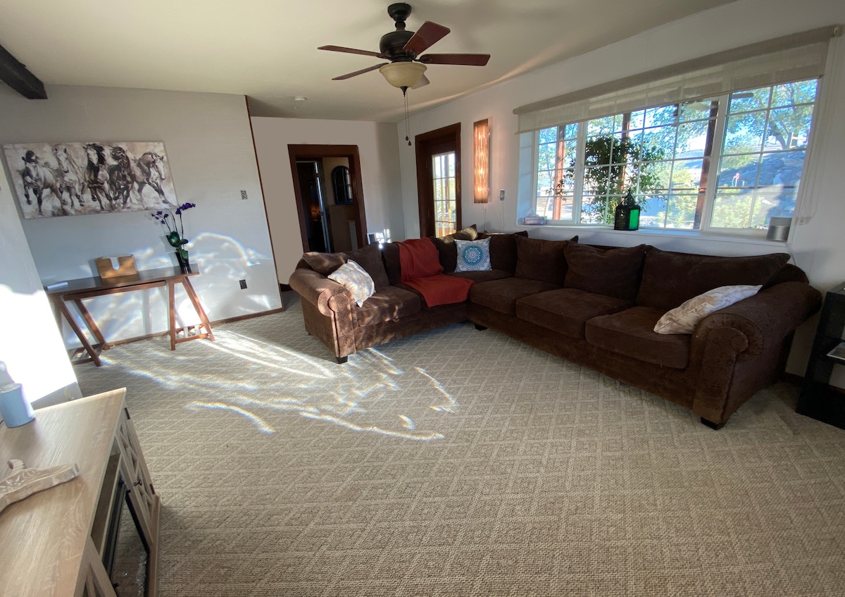 Genieße eine ruhige Nachbarschaft mit schnellem und einfachem Zugang zu allem, was Reno und Sparks zu bieten haben. Sehr gemütliche und stilvolle Studio-Wohnung mit eigenem privaten Eingang und Terrasse/Grillplatz. Wäschemöglichkeiten stehen ebenfalls zur Verfügung! Im Inneren findest du eine voll ausgestattete Küche vor, die mit Kaffee, Tee und Gewürzen bestückt ist. Es gibt ein Queensize-Bett und eine ausziehbare Couch, die ungefähr doppelt so groß ist, und ein stilvoll eingerichtetes Badezimmer. Das Studio hat eine kleine Stufe am Eingang.