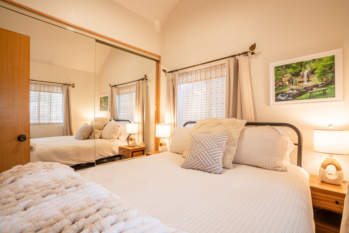 Unsere wunderschön eingerichteten, klimatisierten Hütten verfügen über luxuriöse Queensize-Matratzen, einen Minikühlschrank, eine Keurig-Kaffeemaschine, Smart-TV und das beste Glasfaser-WLAN in 300 Meilen. Genieße romantische Sternennächte auf der Veranda in schönen Outdoor-Stühlen. Entspanne dich in unserem Süßwasserteich, erkunde die Oregon-Höhlen, die malerischen Berge, die lokalen Weingüter oder die zerklüftete Küste von Oregon. Helle Taschenlampen und weiche Handtücher sind vorhanden. Badezimmer und Duschen sind ein paar Schritte entfernt. Spazieren Sie zu einem Markt, einem Feinkostladen und einem Steakhaus