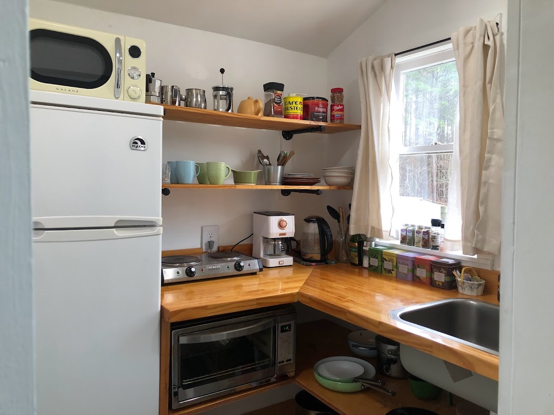 Erlebe die Ruhe und den Frieden dieses einzigartigen kleinen Hauses im County. Mach es dir in diesem gemütlichen Queensize-Bett im Loft dieses privaten Bo-ho-Ferienhauses gemütlich. Bereite Kaffee oder Mahlzeiten in der Küche zu und erledige etwas Arbeit am Schreibtisch oder am Esstisch im Freien mit dem WLAN. Die Dusche verfügt über praktisch unbegrenzt heißes Wasser. Du kannst auch im geheimen Garten unter dem Glanz der Beleuchtung des Bistros zu Abend essen oder in der Hängematte abhängen.