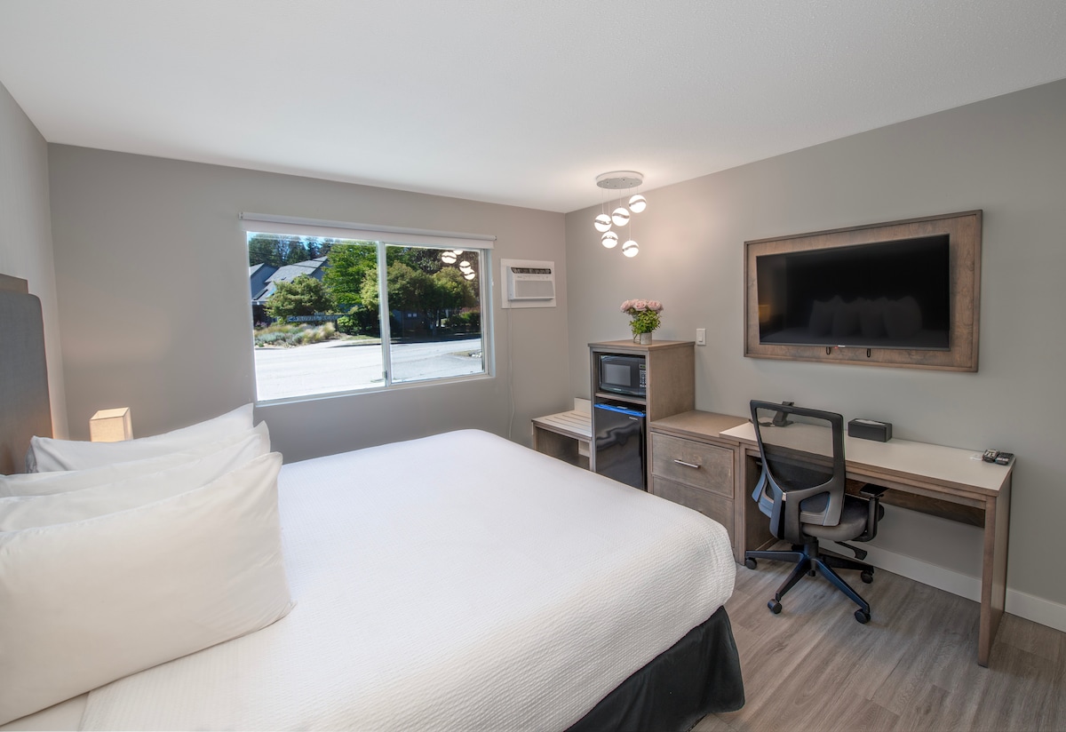 Gemütlich, sauber und zentral gelegen – diese durchdacht eingerichtete Suite mit einem KINGSIZE-BETT liegt nur wenige Schritte vom Westview Ferry Terminal in Powell River entfernt. Perfekt für Reisende, die einfachen Komfort und Bequemlichkeit mit WLAN, Minikühlschrank, Mikrowelle und Kaffeemaschine suchen. Geschäfte, Restaurants und Strände sind zu Fuß erreichbar. Ein idealer Ausgangspunkt, um die Qathet-Region zu erkunden! Treppen erforderlich, um das Gebäude zu betreten, etwas Lärm von umliegenden Geschäften während des Tages und das Restaurant oben geöffnet 16-21 Uhr Di-Sa
