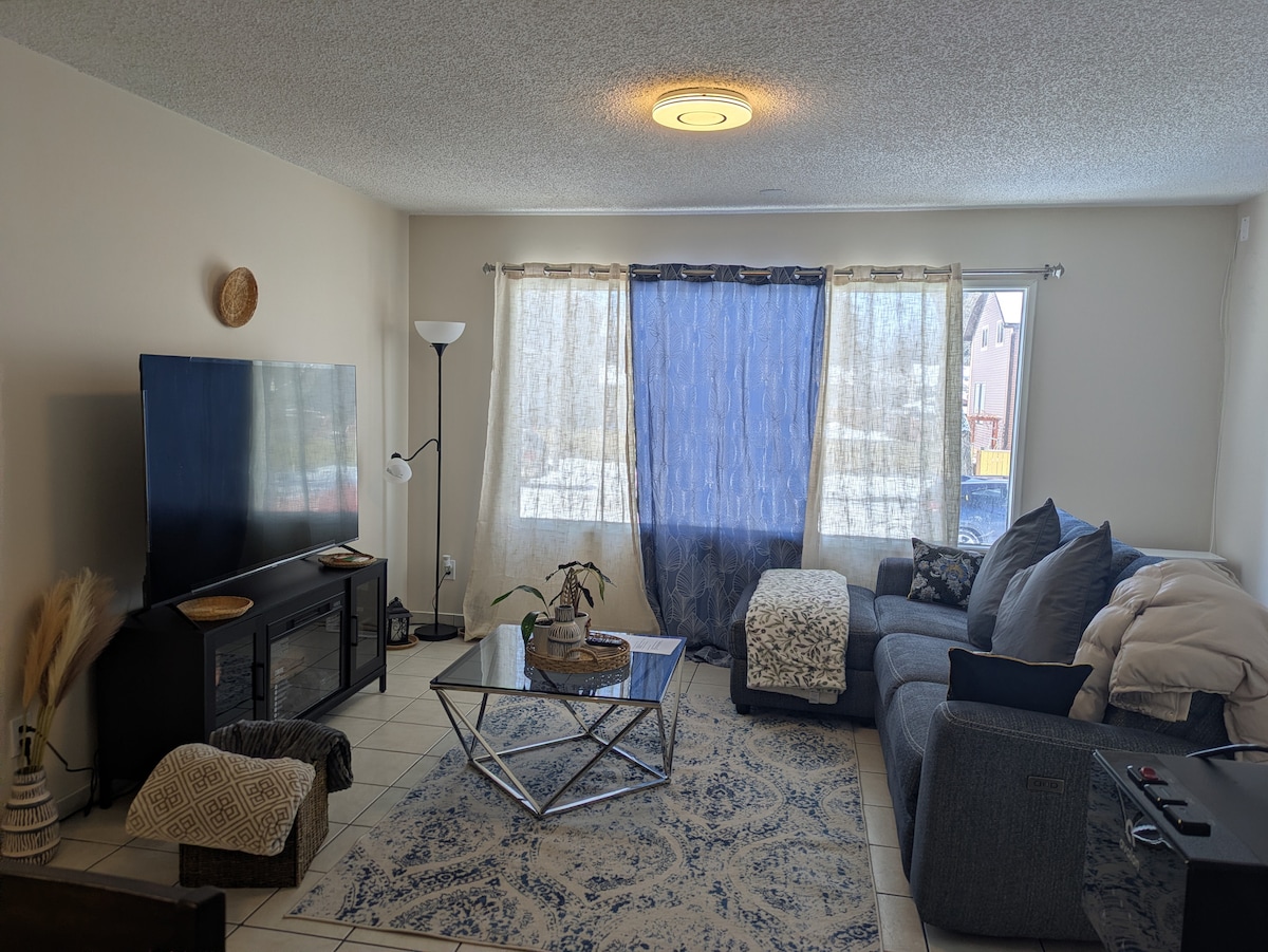 Nimm die ganze Familie mit in diese tolle und geräumige Suite mit 2 Schlafzimmern und viel Platz für Spaß und Unterhaltung. Sie liegt in der Gemeinde New Fraser in einer ruhigen Straße mit vielen Parkplätzen an der Straße. Nur 5 Fahrminuten von Clareview LRT, Canadian Tire, Giant Tiger, Dollarama, Superstore und vielen mehr entfernt. Auch nur 2-3 Gehminuten von der nächsten Bushaltestelle entfernt. Eine saubere, helle und moderne Suite mit separatem Eingang zur Kellersuite. Für Familien mit einem Baby haben wir auch eine wunderbare Wiege.
