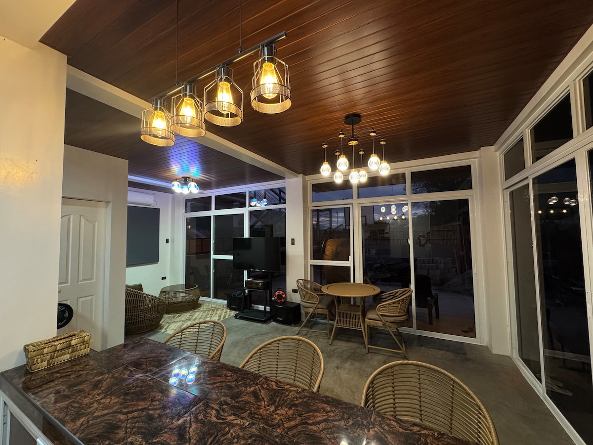 Entspanne dich mit der ganzen Familie in dieser ruhigen Unterkunft. Ein von der Natur inspiriertes privates Resort mit entspannendem Ambiente, das perfekt für deine Familien, Freunde und Haustiere ist. Genieße deine komfortable Unterkunft, den Swimmingpool, komplette Küchenutensilien und Kochutensilien. Du kannst dieses 850 m ² große Anwesen mit seinen Annehmlichkeiten wie Karaoke, Billard, Darts und Mini-Bühne mit unserem Eventbereich mit Bambusmotiv genießen. Haustiere sind auch willkommen!