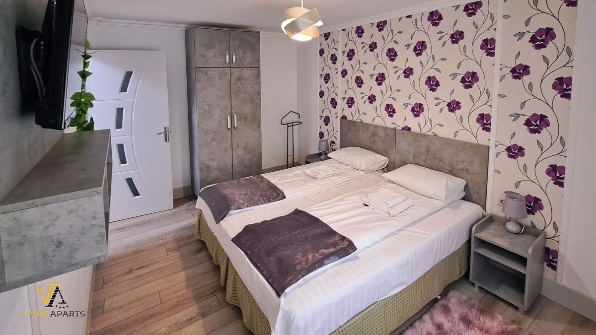 Bine ai venit într-un apartament confortabil situat la parter, în Tîrgu Neamț, parte din Vila Vaias Aparts, într-o zonă liniștită și sigură, aproape de Cetatea Neamțului. Accesul facil și spațiul bine organizat îl fac ideal pentru un sejur relaxant.