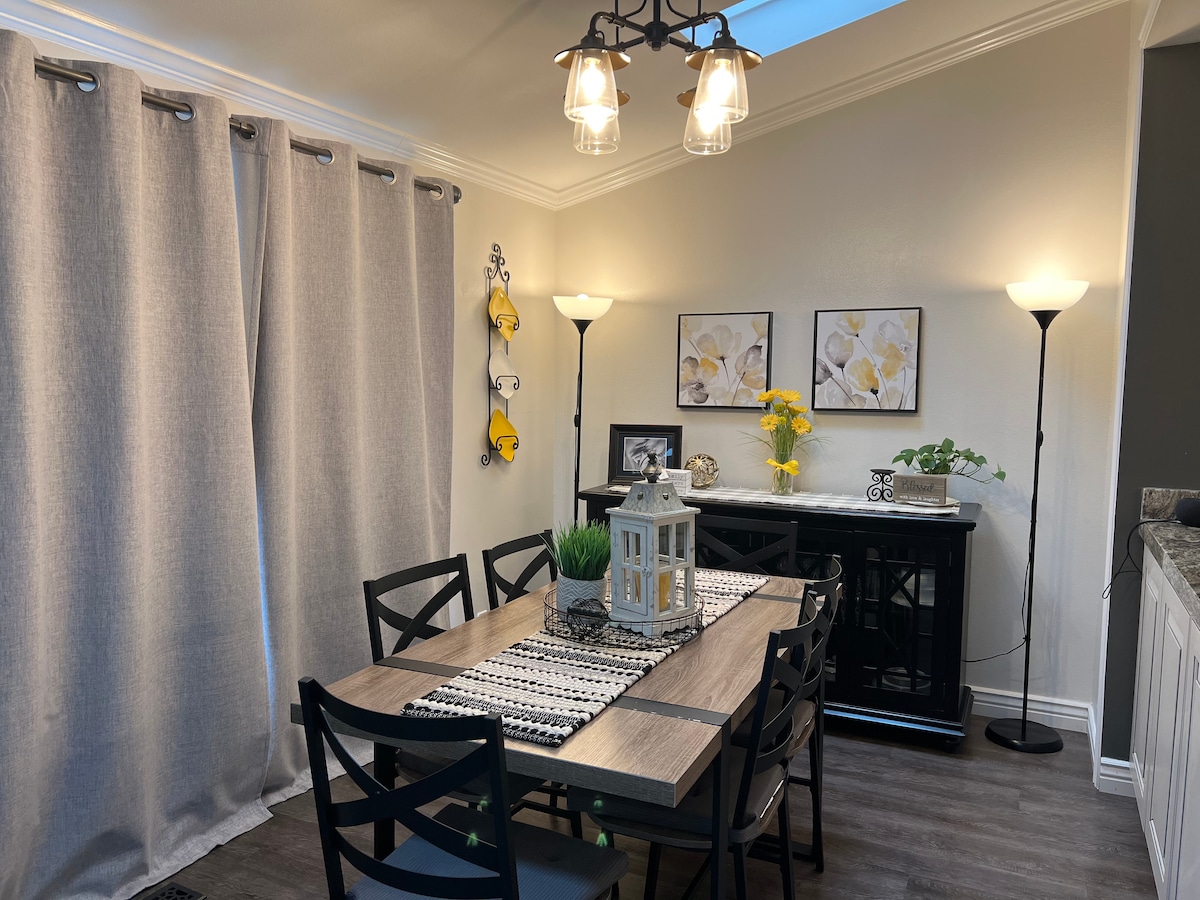Unser gesamtes neues 2-stöckiges Haus, in der Nähe vieler Restaurants, öffentlicher Verkehrsmittel, in der Nähe der Autobahn. Eine 15-20-minütige Fahrt zu mehreren großen Schluchten, direkt in der Nähe von TopGolf, dem Jordan River Parkway und Gardner Village. Genieße den 65-Zoll-Fernseher im Wohnzimmer, einen 55-Zoll-Fernseher im Hauptschlafzimmer und das King Dream Cloud-Bett im Hauptschlafzimmer. Zwei Autogaragen und sehr schnelle WLAN-Verbindung. Du kannst mich gerne als Ressource nutzen, um Fragen zu beantworten oder dir während deines Aufenthalts zu geben, was du brauchst!