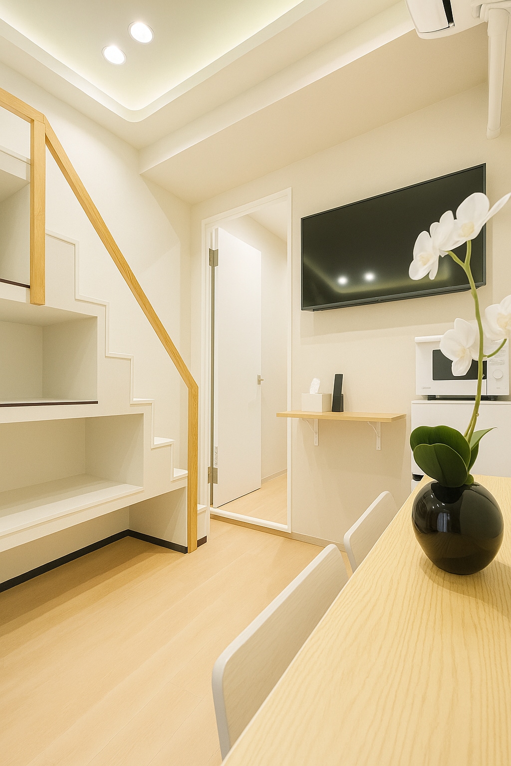 Willkommen in „Pufuka TK Higashi-Mukojima“ Nur 1 Gehminute vom Bahnhof Higashi-Mukojima entfernt, Perfekt für Sightseeing oder Geschäftsreisen in Tokio. Ca. 50 Minuten vom Flughafen Narita oder Haneda mit dem Keisei Skyliner + Transfer in Oshiage. Einfacher Zugang zum Zug: Skytree: 5 Min. Asakusa: 9 min Ueno/Akihabara: 25 Minuten Shinjuku/Ginza/Shibuya: 30–35 Min. Das Hotel liegt in einer ruhigen Wohngegend mit vielen lokalen Cafés und Restaurants. Entspanne dich in einem stilvollen Zimmer, nachdem du Tokio erkundet hast.