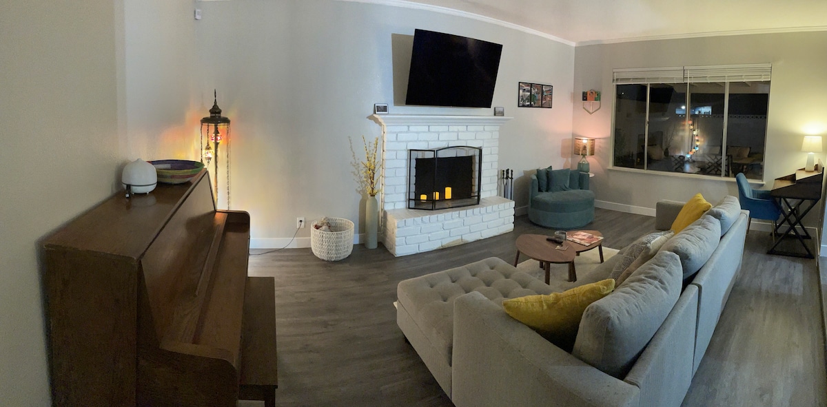 Langzeitbesucher willkommen! Dieses unglaubliche, über 220 Quadratmeter große Haus verfügt über moderne Renovierungen und einzigartige Möbel. Trete ein und werde von einem 8 Fuß hohen funkelnden Kronleuchter und wunderschönen, mit Marmor gestalteten Böden begrüßt. Ein Fitnessraum, ein Pool, ein Whirlpool, eine fantastische Küche mit Samsung-Geräten, ein 75-Zoll-Samsung-4k-TV und schöne Leuchten überall ... dieser Ort hat einfach alles. Etwa 15–20 Minuten vom Strip entfernt! HINWEIS: Dies ist KEIN Partyraum! Bitte respektvoll mit den Regeln und den netten Nachbarn umgehen.