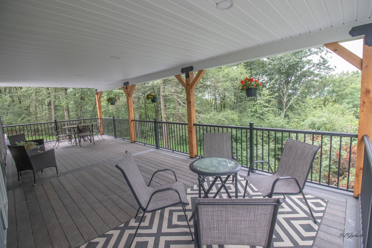 Blue Mountain Overlook befindet sich am Blue Mountain/Appalachian Trail. Entfliehe in die wunderschönen Blue Mountains von Central Pennsylvania und entspanne dich in diesem abgelegenen und geräumigen Haus. Eingebettet in die ruhigen Wälder von Berks County, genießt du hier die Ruhe und den Frieden der Natur. Erlebe romantischen Luxus und Einsamkeit in einer üppigen, bewaldeten Umgebung, die einen atemberaubenden Panoramablick auf Berge und Täler bietet. Dies ist ein perfekter Zielort, den du das ganze Jahr über genießen kannst.