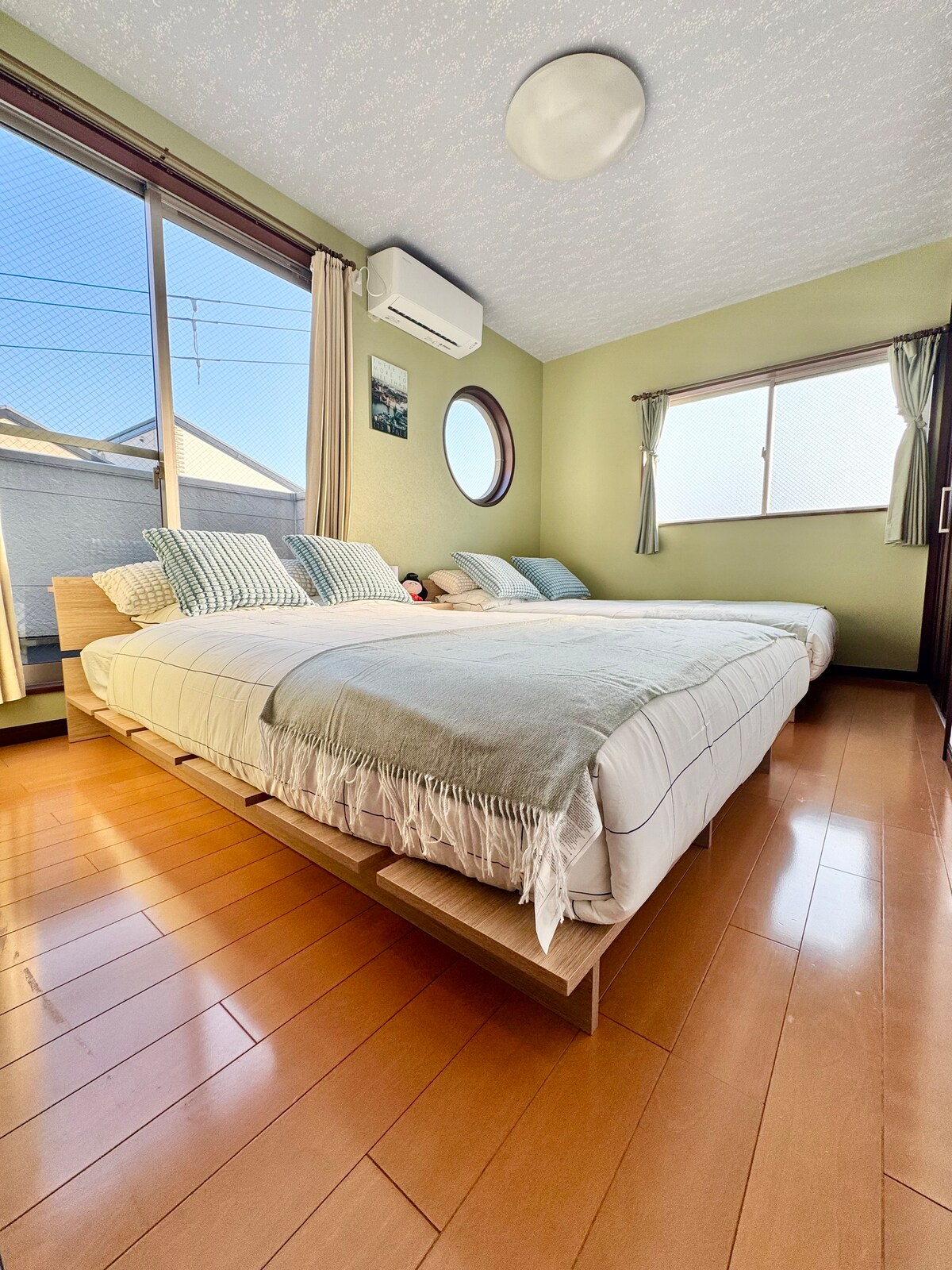 Diese Unterkunft ist perfekt für einen Familien- oder Gruppenurlaub.Es befindet sich auf einem Hügel, und es wird empfohlen, eine Villa mit Ästhetik mit Blick auf die Fuga Bay von der Terrasse im zweiten Stock und dem Zimmer zu mieten. Um die Privatsphäre zwischen den Gästen zu gewährleisten, haben wir 3 Schlafzimmer + 1 Zimmer im japanischen Stil.In jedem Schlafzimmer sind zwei Simmons Betten installiert.Bitte verbringe eine elegante Zeit in einer anderen Umgebung als sonst. * Wenn du auf der Suche nach einem Plan mit Kochen usw. bist, kannst du uns von unserer Website aus kontaktieren.Suche nach „Awaji Island C-Side“.