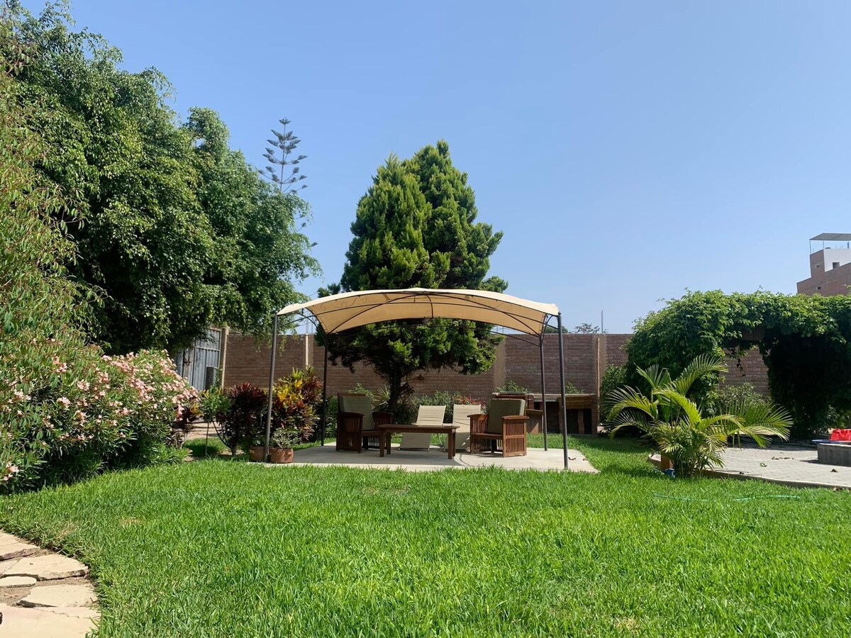 Genieße die Ruhe von Sunampe. Genieße einen ruhigen Aufenthalt mit deiner ganzen Familie in unserem gemütlichen Rückzugsort im grünen Herzen von Sunampe. Nur 10 Minuten von den goldenen Stränden und 5 Minuten vom trendigen Einkaufszentrum Parque Chincha entfernt bist du inmitten der Natur, Komfort und ausgezeichneter Lage. Erkunde ländliche Restaurants, typische Pollerien und renommierte Hotels wie Casa Andina. Erlebe das lokale Erlebnis mit nahegelegenem Zugang zur Plaza de Armas de Sunampe.