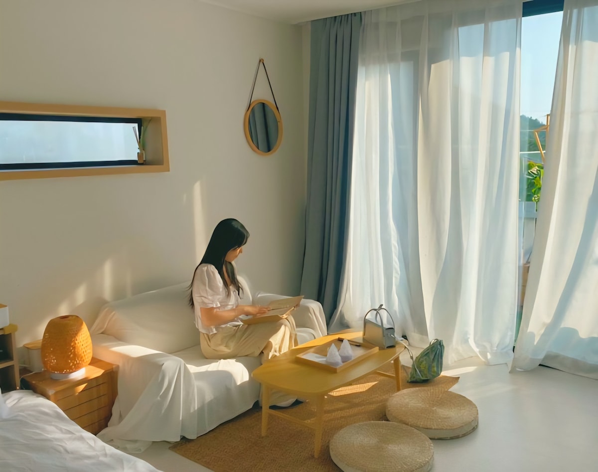 Dies ist eine private Unterkunft am Eingang eines abgelegenen Dorfes in Namhae. Sie nutzen die 2. Etage des Hauses (66m²) allein und können bis zu 4 Personen bequem unterbringen. Überall im Raum finden Sie die sorgfältige Hand und den Geschmack des Gastgeberpaares, die nach Namhae gereist sind, um das verlorene Gleichgewicht des Alltags wiederzufinden, und den Wunsch, die Freude des einfachen Alltags, die sie in Namhae wiederentdeckt haben, zu teilen. Das Haus der langsamen Reisenden, das Haus im Süden, träumt davon, eine Oase für langsame Reisende zu sein, die sich auf eine lange Reise begeben haben, um die verlorenen wertvollen Teile des Alltags zu finden. Entfliehen Sie der Hektik des Alltags und genießen Sie das einfache Leben auf dem Land. @sidehome_namhae