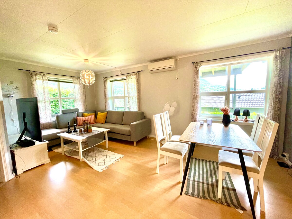Welcome to beautiful Jølster, a perfect starting point for outdoor activities and cultural experiences. The new, high-standard apartment has a modern and open design, with plenty of space, a fully equipped kitchen and a fitness center - ideal for both relaxation and active days. With fantastic nature right outside the door, you can explore hiking and skiing opportunities, as well as take advantage of good hunting and fishing opportunities in the area.