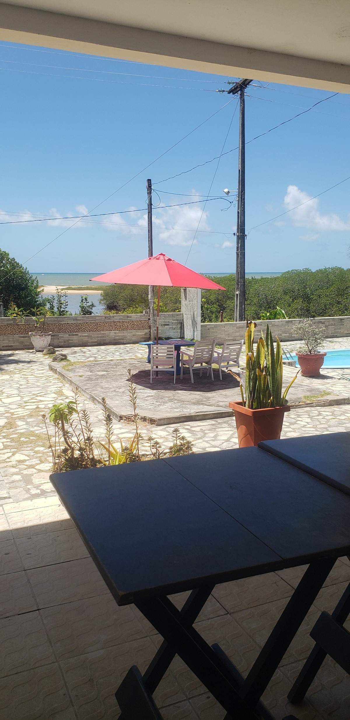 Relaxe com toda a família nesta acomodação tranquila a beira do mar . São cinco suítes com ar, duas com cama de casal e cama de crianças , duas com 2 camas de casal , e 1 com cama de casal. Cozinha com geladeira , fogão , liquidificador , microondas , cafeteira e torradeira , sala enorme com dois ambientes medindo cerca cerca de 55 metros quadrados , mesa para 20 pessoas , quadra de areia para esportes . Na parte mais visitado de Tabatinga ,ao lado de 2 restaurantes ao lado ( Kuara e Tabagrill)