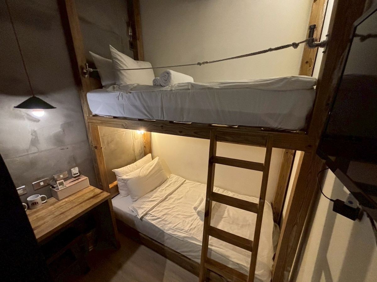 Ein tolles Privatzimmer mit 2 Einzelbetten und Gemeinschaftsbad, kein Fenster, Klimaanlage. Zugang zu allen öffentlichen Annehmlichkeiten: Wohnzimmer, Küche, Waschmaschinen und Trockner. Japanischer Tatami Chill-out-Raum. Rezeption täglich von 9:00 bis 21:00 Uhr geöffnet. Eigenständiger Check-in täglich nach 21:00 Uhr möglich. In der Nähe des Taipeh Hauptbahnhofs (MRT, HSR, TRA) kannst du eine große Auswahl an Taiwan-Attraktionen erleben, während du nur wenige Minuten vom Ximending District entfernt bist. Taipeh Main Sta., Ximen MRT, Flughafen Taoyuan MRT, Ximending - unter 10 Min.