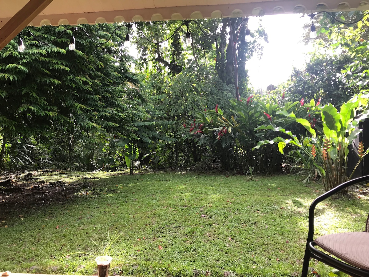 Unsere charmante Studio-Hütte mit Schlafloft befindet sich 10 Gehminuten und 2 Autominuten vom schönen Cahuita-Nationalpark und dem Dorf Cahuita entfernt. Die Casita verfügt über eine ausgestattete Küche, ein eigenes Badezimmer und eine Warmwasserdusche. Nur wenige Schritte von der Veranda der Cabina entfernt befindet sich eine überdachte Rancho mit Essbereich und Hängematten, auf der du dich entspannen und die verspielten Besuche der Brüll- und Kongoaffen, Tukane und gelegentlich Leguane beobachten kannst.