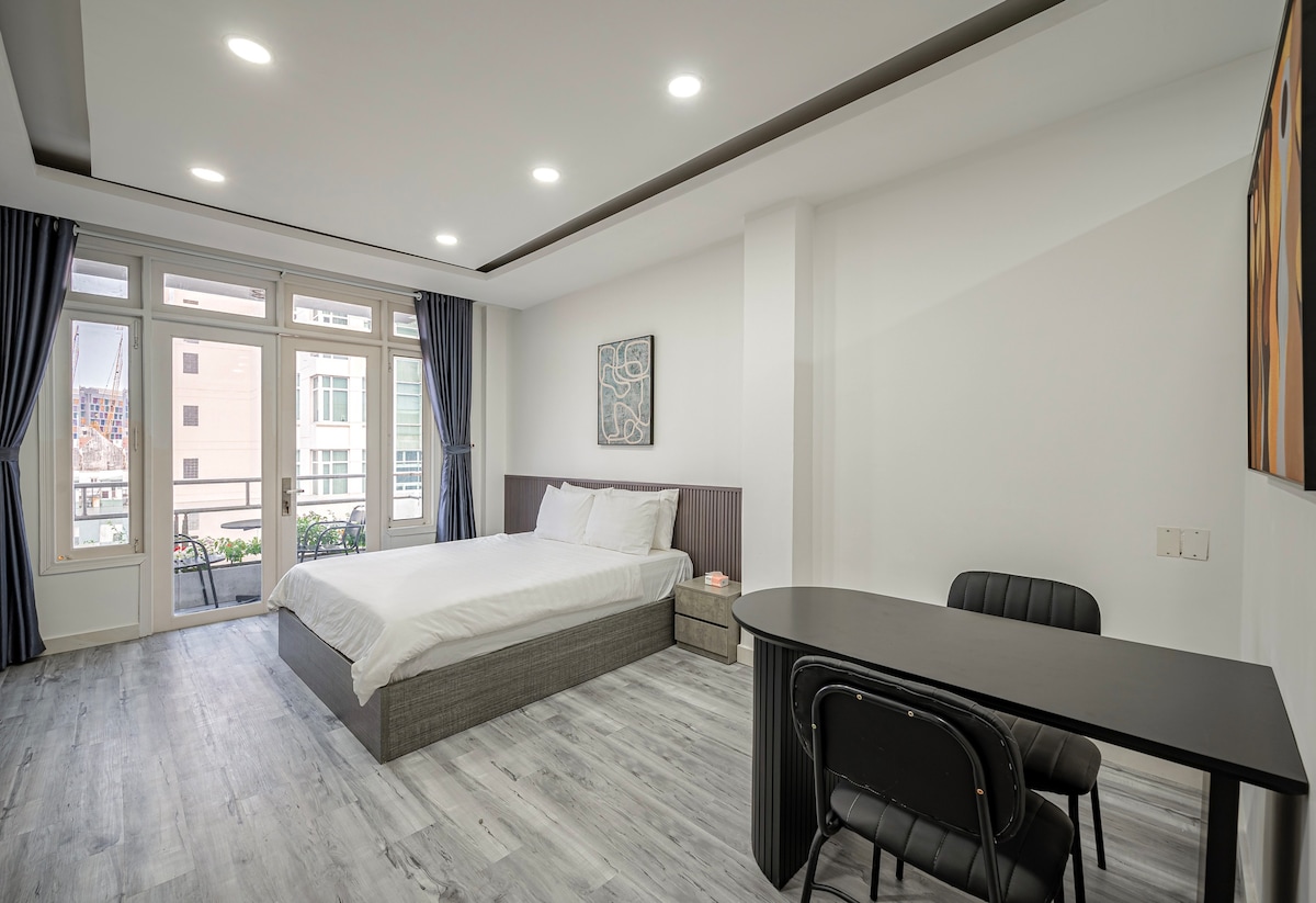 Willkommen! Dieses helle und geräumige Studio ist perfekt für kurze und lange Aufenthalte. Im Herzen der Stadt in Đa Kao, Bezirk 1, Ho-Chi-Minh-Stadt gelegen, bietet es Komfort, Platz und eine ausgezeichnete Lage. Genieße einen schönen Blick auf die Stadt vom großen, grünen Balkon — ein idealer Ort, um nach einem anstrengenden Tag zu entspannen. Wichtige Sehenswürdigkeiten wie der Wiedervereinigungspalast, der Ben Thanh Markt und das zentrale Postamt sind alle innerhalb von 10 Gehminuten erreichbar. Perfekt für Touristen und Geschäftsreisende gleichermaßen