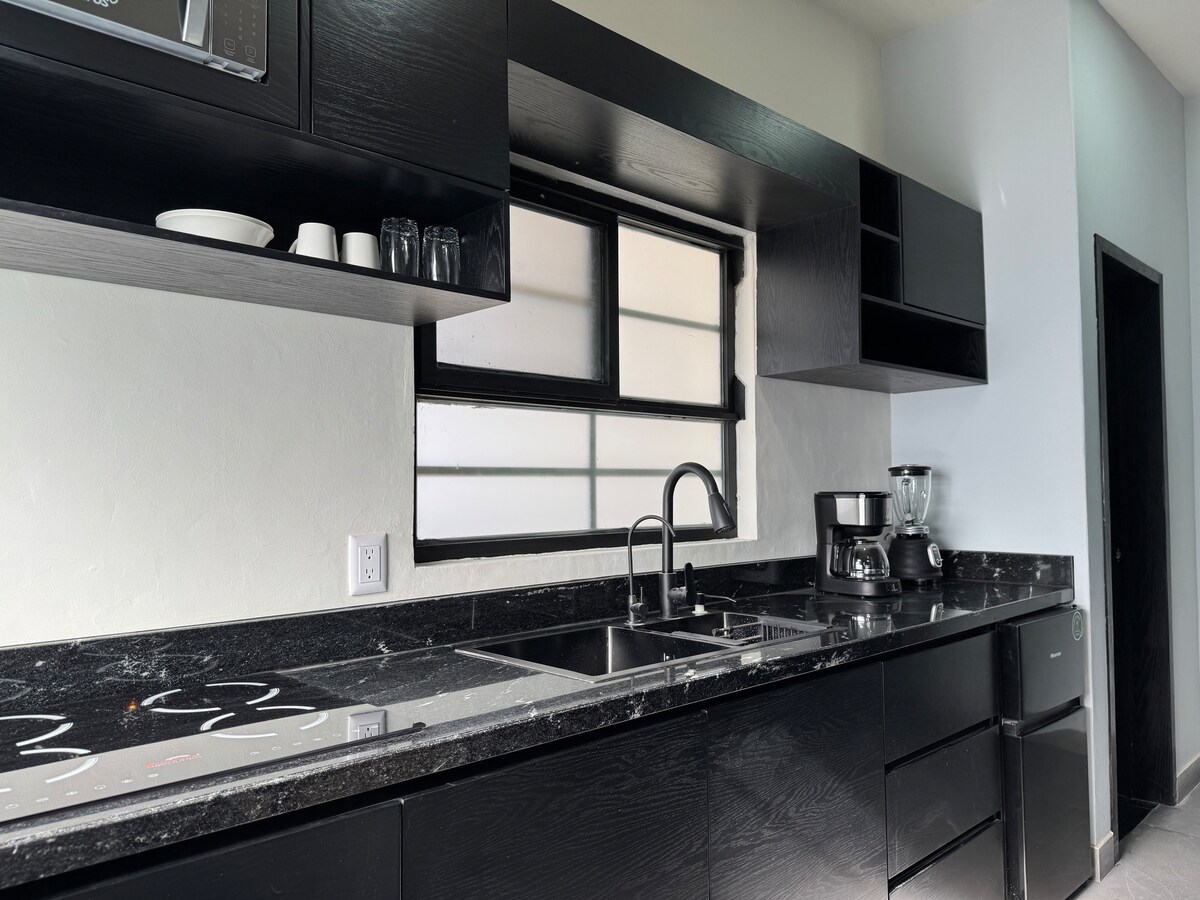 Excelente habitación con terraza , cocina completa y con alberca climatizada privada solo para ustedes , Este lugar tiene una ubicación estratégica ya que está a 2 cuadras del centro ,cuenta estacionamiento para 4 carros, wiffi,