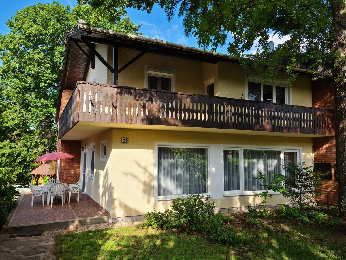 Schönes, geräumiges und lichtdurchflutetes Ferienhaus, nur zehn Gehminuten vom Balaton entfernt. Im Haus befinden sich zwei Schlafzimmer, zwei Badezimmer (eines davon mit Badewanne) sowie ein geräumiges Wohnzimmer. Es gibt einen Fernseher, ein großes, gemütliches Sofa und eine angrenzende Küche mit Esstisch. Draußen erwartet Sie eine großzügige, überdachte Terrasse. Im Garten stehen ein Grill und ein Wok zur Verfügung.