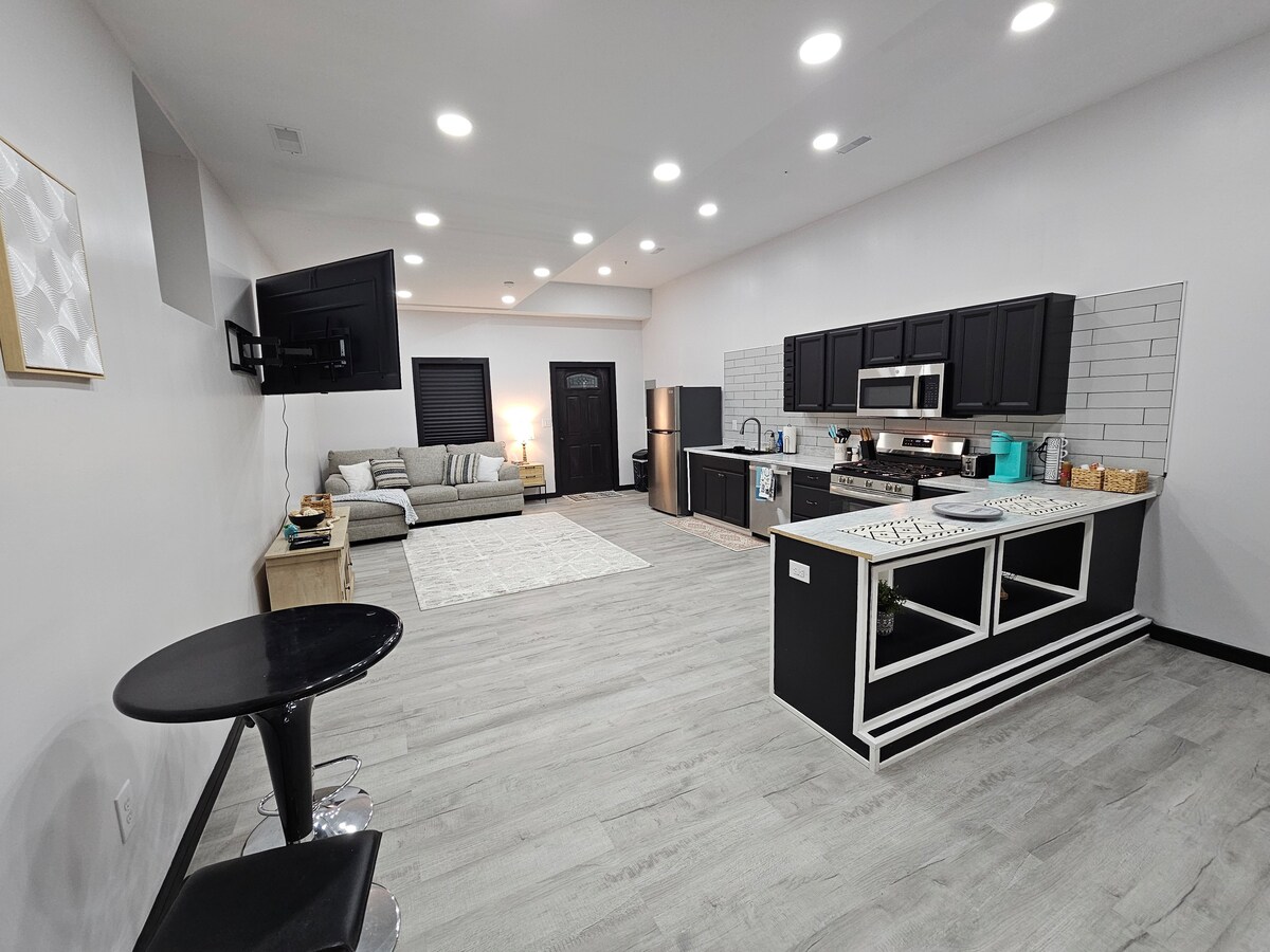 Ein geräumiges Loft mit einem Kingsize-Bett, in dem du dich wie in einem luxuriösen Hotelzimmer fühlst. Diese Einheit ist 2024 von den Böden bis zur Decke komplett neu! Voll ausgestattete Küche mit Edelstahlgeräten und viel Platz an der Theke. Sie ist komplett mit Geschirr, Besteck, Backutensilien, Schüsseln und vielem mehr ausgestattet! Schönes, brandneues Badezimmer mit hohen Decken und bereit für deinen Aufenthalt mit frischen Handtüchern, Shampoo und Duschgel. 65-Zoll-Drehfernseher! Nur wenige Minuten von der Route 28 entfernt, um die Stadt leicht zu erreichen.