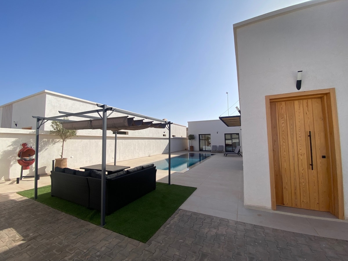 Sehr schöne Villa von 120 m2 auf einem Grundstück von 550 m2, bestehend aus 2 Schlafzimmern, 2 Bädern,großem umzäunten Garten ohne Gegenüber, privater Pool von 4*8 m große überdachte Terrasse. Terrasse. Sie profitieren von einer kompletten Ausstattung, Küche mit Mikrowelle, Backofen, Geschirrspüler. Die Villa verfügt über WLAN, Waschmaschine und alles, was man für einen perfekten Urlaub braucht. Im sicheren Bereich Dyar Shemsi gelegen, können Sie einen Gemeinschaftsparkplatz, einen 300 m2 großen Gemeinschaftspool, einen Fitnessraum usw. nutzen.