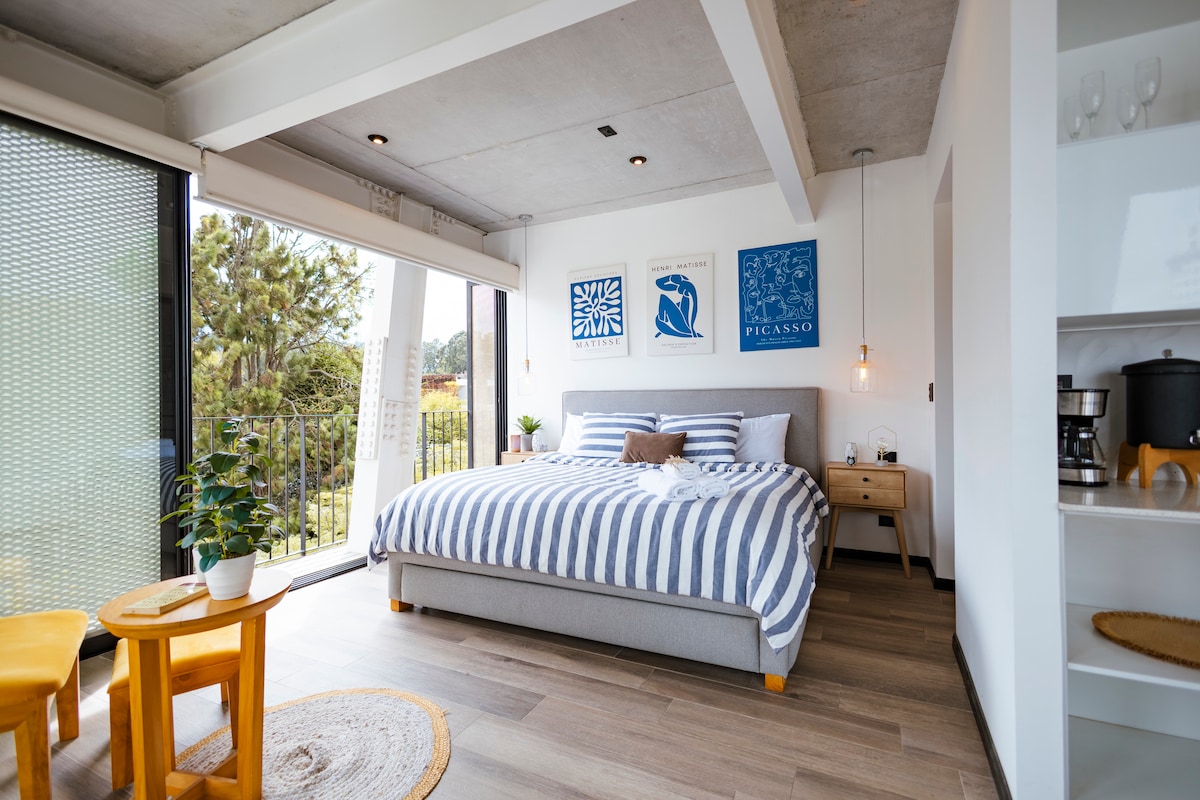 Stell dir vor, du bist umgeben von natürlichem Licht in einem eleganten Studio, das entworfen wurde, um dich wieder mit dir selbst zu verbinden. Diese Unterkunft befindet sich im Herzen von Muxbal und bietet Ruhe, ohne sich von der Stadt zu trennen. Perfekt für Reisende, die mehr als nur einen Ort zum Schlafen suchen: Hier findest du Stil, Ruhe und Funktionalität. Wir verfügen über Panoramawände mit Blick auf Guatemala-Stadt, die Wälder von Muxbal und die ikonischen Vulkane Agua, Fuego, Acatenango und Pacaya.