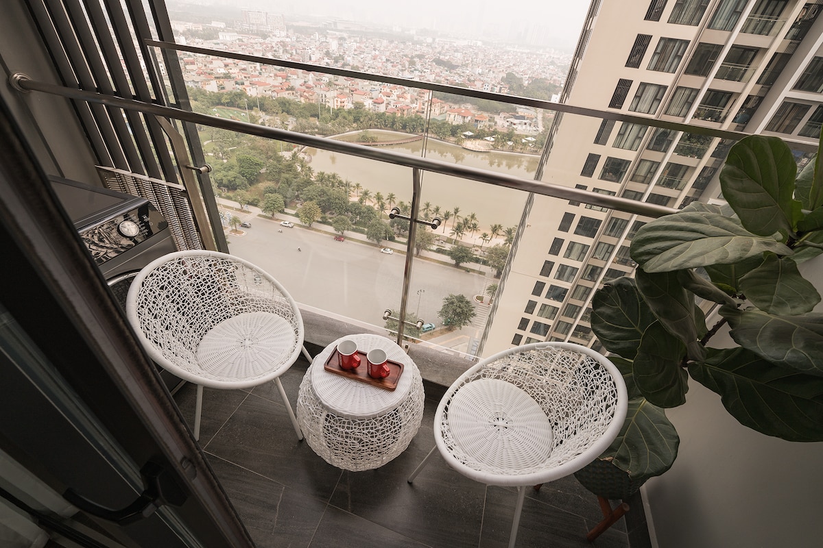Die Wohnung ist luxuriös gestaltet, modern mit offenem Raum, poetischer Aussicht sowohl auf den See als auch auf die schimmernde Stadt. Voll ausgestattete Küche mit grundlegenden Kochutensilien, praktischem Backofen, bereit für köstliche Mahlzeiten. Entspanne dich mit dem Großbildfernseher von Netflix oder genieße ein Glas Wein in deinem eigenen gemütlichen Raum. Insbesondere haben Sie auch freien Zugang zu einem modernen Swimmingpool und Fitnessraum auf dem Gelände, was Ihnen hilft, während Ihres Aufenthalts aktiv und entspannend zu bleiben.
