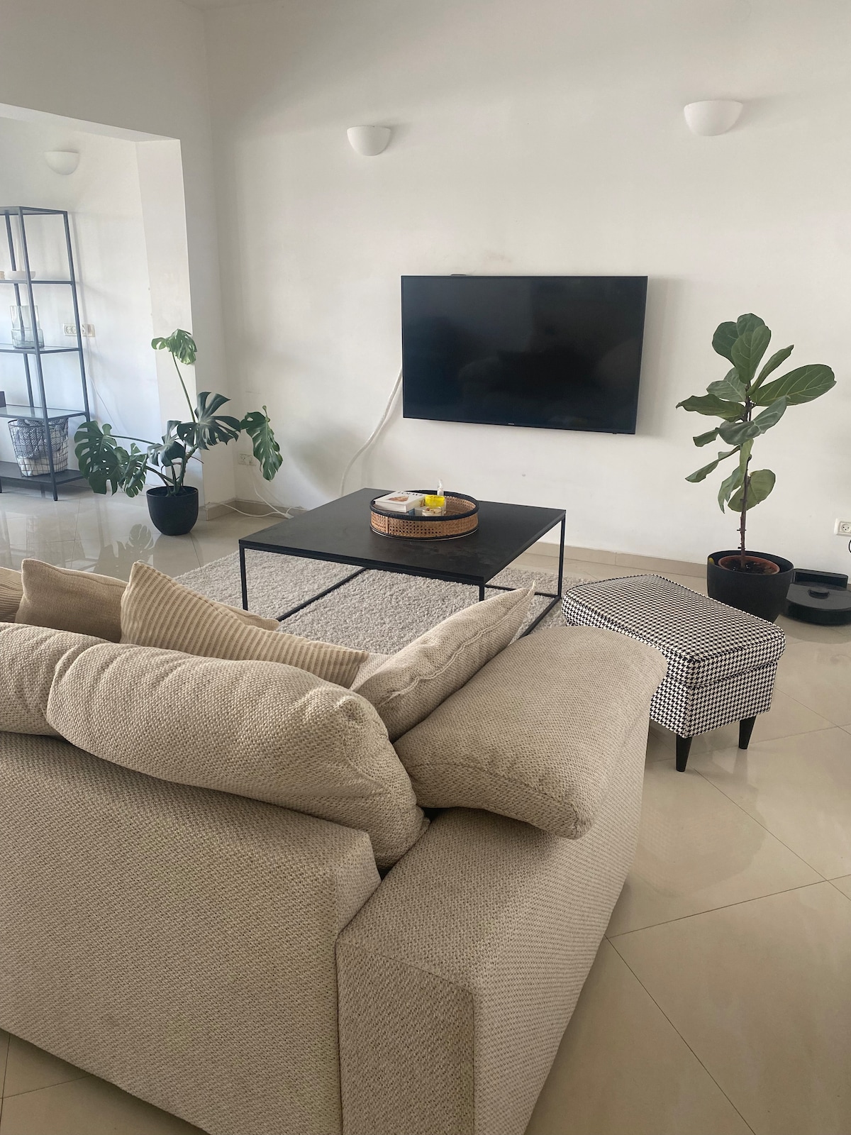 amazing vacation apartment located in front of the sea Gordon Beach. The building is located among the best hotels in Tel Aviv. The popular beach full of surfers, colorful boats, and people playing on the beach. All this is perfectly synchronized with the sea view The apartment is 85 meters in size, divided in a very spacious way. With 2 bedrooms, living room and kitchen. Fast fiber optic internet in the entire apartment. The apartment is on the 3rd floor without an elevator.