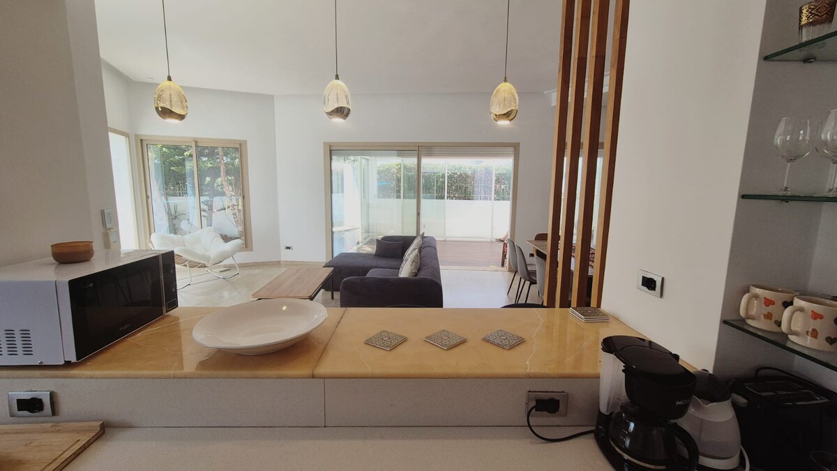 🌊Willkommen in deinem Zufluchtsort am Meer in Val d’Or ☀️Lass dich in einer Villa direkt am Strand in der Nähe von Rabat von den Klängen des Atlantiks wecken. Morgendlicher Kaffee im Garten, Strandspaziergänge, Sonnenuntergänge. Perfekt für Familien und Freunde, um wieder zusammenzukommen und am Meer zu entspannen 🏡3 Schlafzimmer, 3 Badezimmer, heller Wohnbereich, voll ausgestattete Küche, privater Garten mit Sitzgelegenheiten und direktem Strandzugang. Handtücher & Bettwäsche vorhanden 💡WLAN, eigenständiger Check-in, Parkplatz In der Nähe: Restaurant Les 3 Palmiers, Lebensmittelgeschäfte, Apotheke, Hotel Conrad Arzana, Tankstelle
