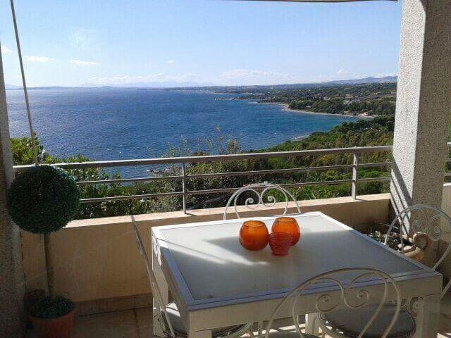 Wohnung mit eigener Terrasse und Panoramablick auf die umliegenden Hügel und das Meer. Die Wohnung verfügt über einen Wohnbereich mit Küchenzeile, ein Schlafzimmer mit Doppelbett, zwei Sofas und ein eigenes Bad. Das B&B befindet sich auf einem Hügel, abseits vom Verkehrslärm und den Städten. Perfekt zum Entspannen und um einen erholsamen Urlaub zu genießen. Das Frühstück, das im Preis inbegriffen ist, wird jeden Morgen auf der Veranda der Veranda serviert.