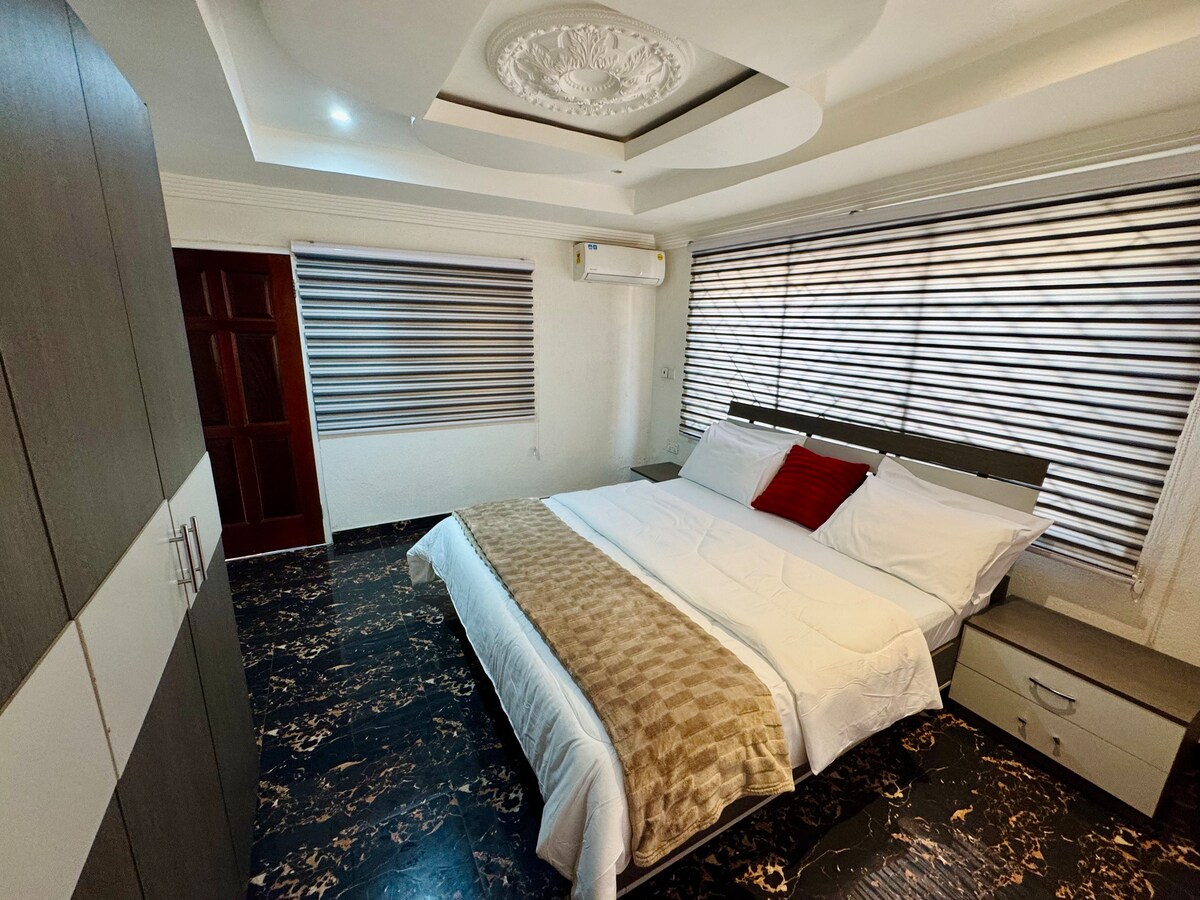 Erlebe Komfort in unserem modernen Studio in den Signature Apartments, einem der begehrtesten Orte in Accra. Nur 7 Minuten vom Flughafen entfernt und in der Nähe von Einkaufszentren, Restaurants und wichtigen Sehenswürdigkeiten, ist es ein großartiger Ort zum Erkunden, Entspannen oder um sich mit Leichtigkeit fortzubewegen. Genieße Zugang zu erstklassigen Annehmlichkeiten wie einem Pool auf der Dachterrasse, einem Fitnessstudio, einem Spa, einem Kino und einem Sicherheitsdienst rund um die Uhr. Perfekt für einen kurzen Ausflug, eine Geschäftsreise oder einen Stadturlaub, bietet diese Unterkunft Stil und Komfort im Herzen von Accra.