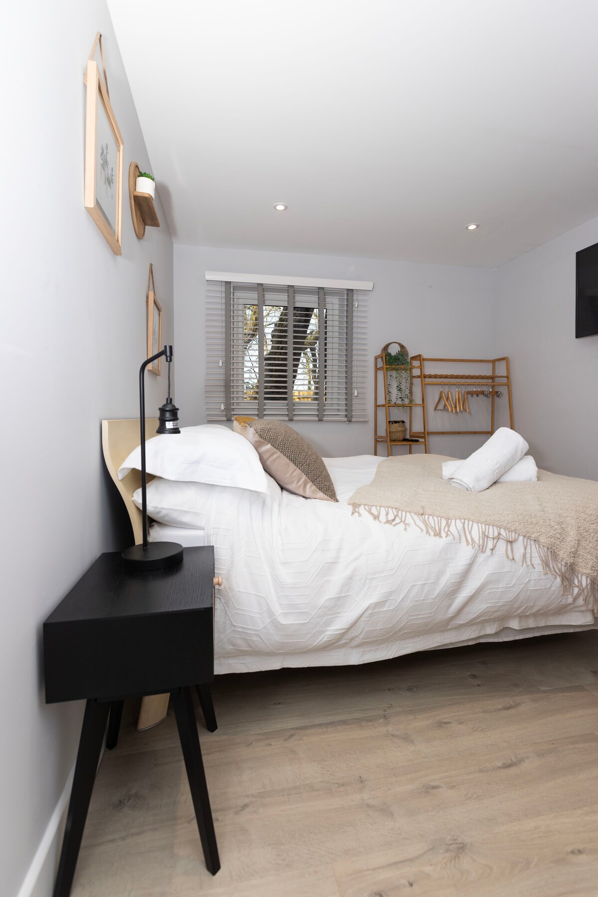 Willkommen an einem ruhigen, abgelegenen Ort in Basildon. Diese Einzimmerwohnung wurde kürzlich im Stil eines luxuriösen Boutique-Hotels neu gestaltet. Sie verfügt über eine ausgestattete Küche, eine harmonische Schlafzimmersuite, eine entspannende Lounge mit einem 43-Zoll-TV und einen stilvollen Essbereich, der unvergessliche Abende garantiert. Tritt hinaus und du bist nur wenige Meter vom Naturschutzgebiet Langdon Hills entfernt. Diese Wohnung befindet sich in der Nähe des Stadtzentrums, des Krankenhauses und des Bahnhofs und bietet sowohl Komfort als auch eine schnelle Reise in das pulsierende Herz Londons.