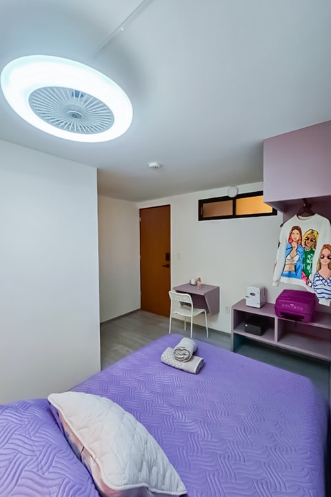 Diese stilvolle Unterkunft ist die perfekte Kulisse für deinen Aufenthalt. Die private Suite verfügt über eine komplette Ausstattung: ausgestattete Küche, Utensilien, Kühlschrank, Backofen und Kaffeemaschine. Das Schlafzimmer verfügt über eine eigene Terrasse und ein Queensize-Bett. Das geräumige moderne Badezimmer ist mit allem ausgestattet, was du benötigst, um deinen Aufenthalt zu einem Vergnügen zu machen. Gemeinschaftsräume mit Roof Top an der Sky Line of Reforma sorgen dafür, dass du dich in der besten städtischen Gegend der Stadt fühlst. 24-Stunden-Sicherheitsdienst und Waschraum.
