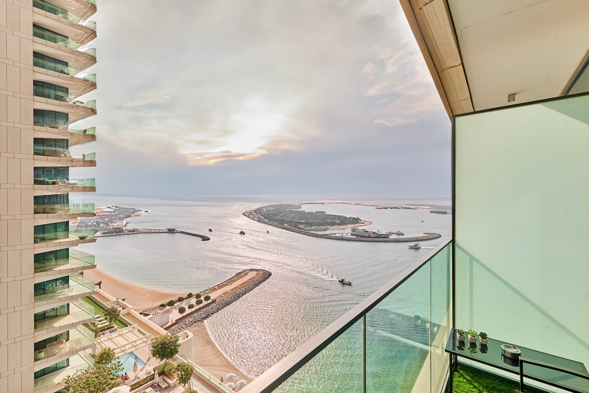 Mediterran inspirierte Wohnung am Strand im Herzen von Palm Jumeirah, entworfen von den Top-Innenarchitekten der Region. Diese weitläufige Residenz bietet einen atemberaubenden 180-Grad-Blick auf das Meer, eingerahmt von raumhohen Fenstern. Betritt den Glasbalkon, um die ikonische Aussicht auf Burj Al Arab und Downtown zu genießen. Genieße ultraluxuriöse Annehmlichkeiten in einem Fünf-Sterne-Hotel mit einem hochmodernen Fitnessraum, einer Sauna, einem großen Außenpool und exklusivem Zugang zum Privatstrand.