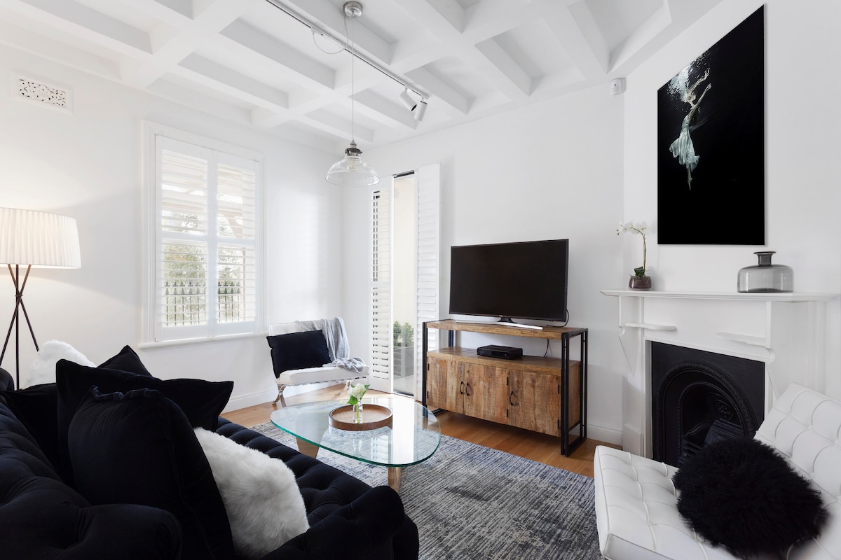 Mit 180-Grad-Blick auf Barangaroo und Balmain und einem Innenhof, um nachmittags Drinks zu genießen, ist dieses 3-stöckige Haus mit allen modernen Annehmlichkeiten wie Smart-TV, WLAN, luxuriöser Bettwäsche aus ägyptischer Baumwolle, Klimaanlage, Waschmaschine/Trockner, Marmorküche, Holzböden, Regenduschen, maßgeschneiderten Kleiderschränken, einer Klauenfuß-Badewanne und viktorianischen Kaminen ausgestattet. 5 Gehminuten von Barangaroo, 10 Gehminuten vom Circular Quay und CBD und um die Ecke von einigen der besten Restaurants und Bars, die Sydney zu bieten hat, entfernt.