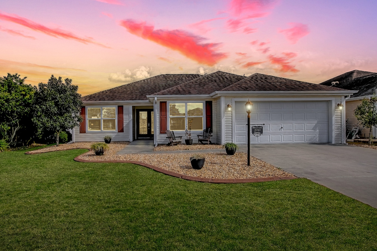 Beautiful Monterey style 1600 SQFT home, 2BR/2BA, fully furnished with a heated pool at 85' year round. Great location in Rio Grande; just a short golf cart ride to Spanish Springs & Lake Sumter. Home is on a quiet cul-de-sac; no neighbors behind. Private lanai from the Florida room. Tile and granite countertops throughout; Stainless steel appliances; sleeper sofa in the LR. 4 person gas golf cart also included. Sorry, hot tub not included. Dog friendly! Smart Tvs in both BRs, cable in LR only