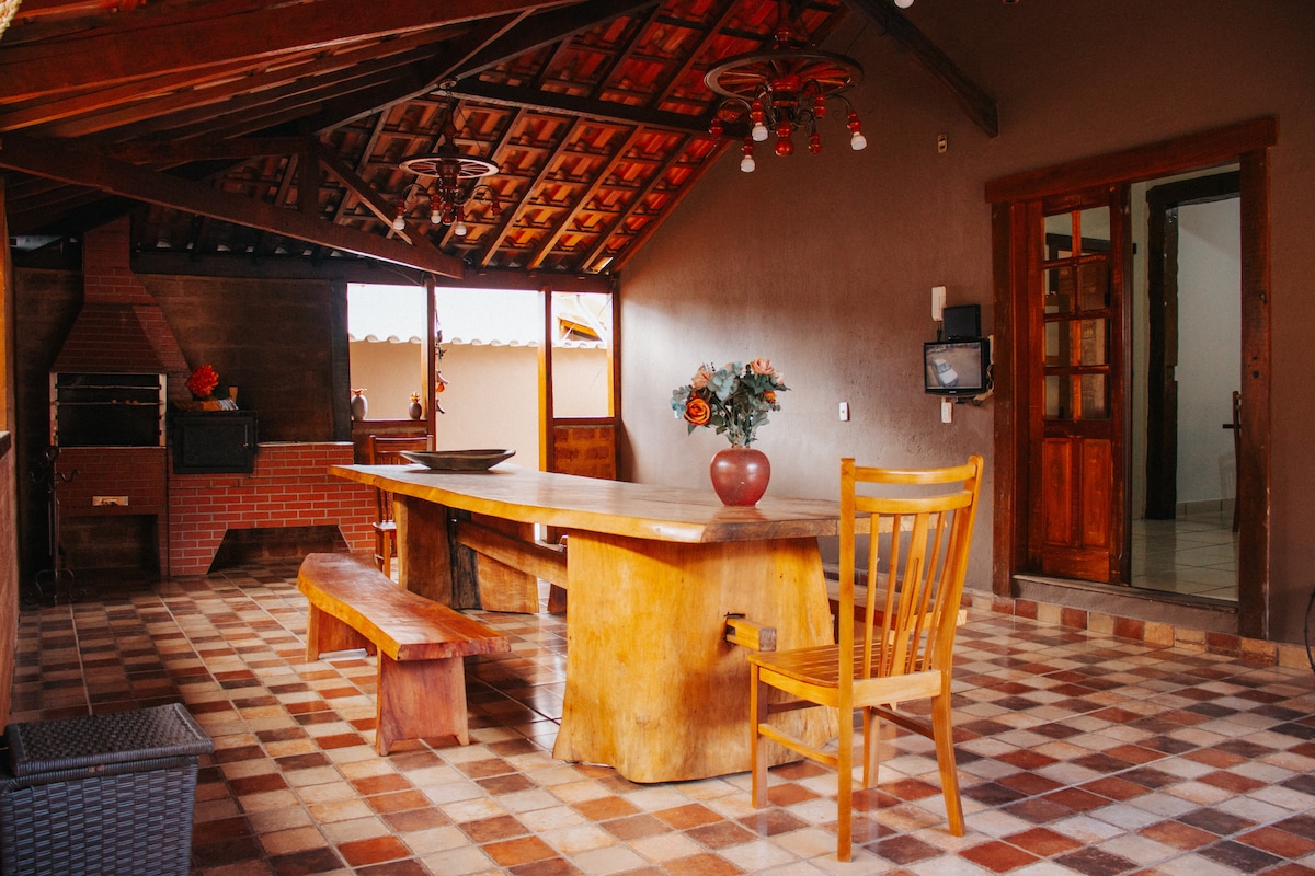 Ganzes Haus für den Gast in Vila de PICHINHO. Rustikale, luftige Einrichtung, schöner Hinterhof und bewaldeter Garten, ideal für diejenigen, die Ruhe schätzen und sich ausruhen möchten. Perfekt für Paare, Familien mit Kindern, Haustiere und für alle, die von zuhause aus arbeiten müssen. Ein paar Minuten zu Fuß trennen das Chalet vom Zentrum von Bichinho, wo der Gast die Minas Gerais-Gastronomie, lokale Handwerksläden, Möbel und Stills genießen kann. Es liegt 7 km von der charmanten historischen Stadt Tiradentes entfernt.