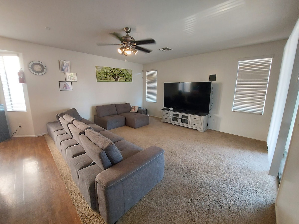 Willkommen in diesem geräumigen und modernen Haus mit 4 Betten und 2 Bädern in der Gemeinde Tartesso in Buckeye, AZ. Es sind 15 Minuten zu allen Restaurants/Geschäften, aber es gibt täglich Foodtrucks in der Gemeinde. • 25 Min zum Generationsbahnhof Palo Verde • Moderne und voll ausgestattete Küche mit Geräten und einer Vielzahl von Gewürzen. • Waschküche mit Waschmittel ausgestattet • Bequeme Betten und Kopfkissen • Smart-TV mit Netflix, Disney+ und mehr. • Bügeleisen/Bügelbrett und Dampfgarer verfügbar.