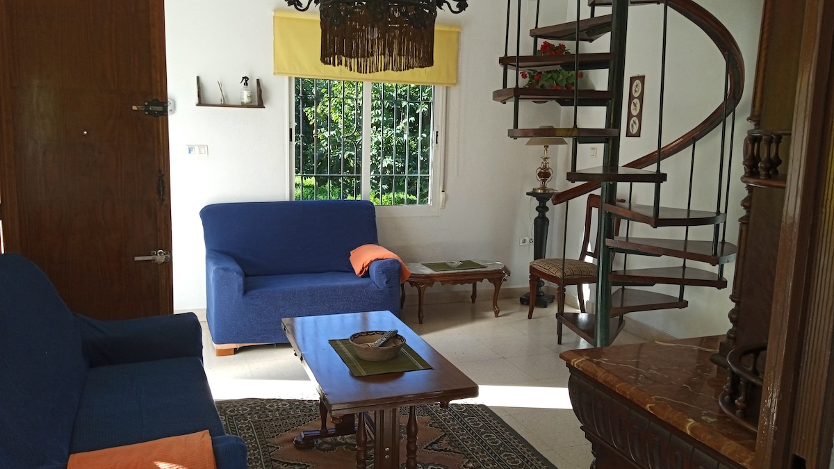 Unser charmantes Haus im authentischen „Pueblo“ -Stil befindet sich im schönsten Park Nerja „Oasis de Capistrano“ und ist perfekt für einen wunderbaren Urlaub an der Südküste Spaniens. Mit Meerblick, schönem Garten, Strand- und Catering-Branche ca. 8 Minuten zu Fuß und dem Zentrum fünfzehn Minuten. Es gibt drei Pools und einen Parkplatz. Das Haus verfügt über zwei Schlafzimmer, zwei Badezimmer, ein schönes Wohnzimmer mit angrenzender Küche und eine Terrasse (+Außenkamin) mit schönem Meerblick.