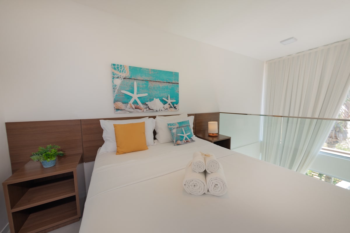 Erinnerst du dich an „Mamma Mia!“ und „Vor Mitternacht“ mit weiß getünchten Häusern mit quadratischem Aussehen, mit einem hellen blauen Dach, Türen und Fenstern am Meer? Nun, dies ist ein Haus mit griechischer Architektur an der brasilianischen Küste. Ein gemütlicher Raum mit 4 Suiten mit Super-Kingsize-Bett, Küche, Wohnzimmer, Klimaanlage, möbliert. Es gibt 3 Suiten mit 18 m2 und 1 Suite mit 27 m2, mit einer Panoramabadewanne und einem angenehmen Balkon, alle 1 Minute vom Strandsand entfernt, in einem Paradies Flecheiras.