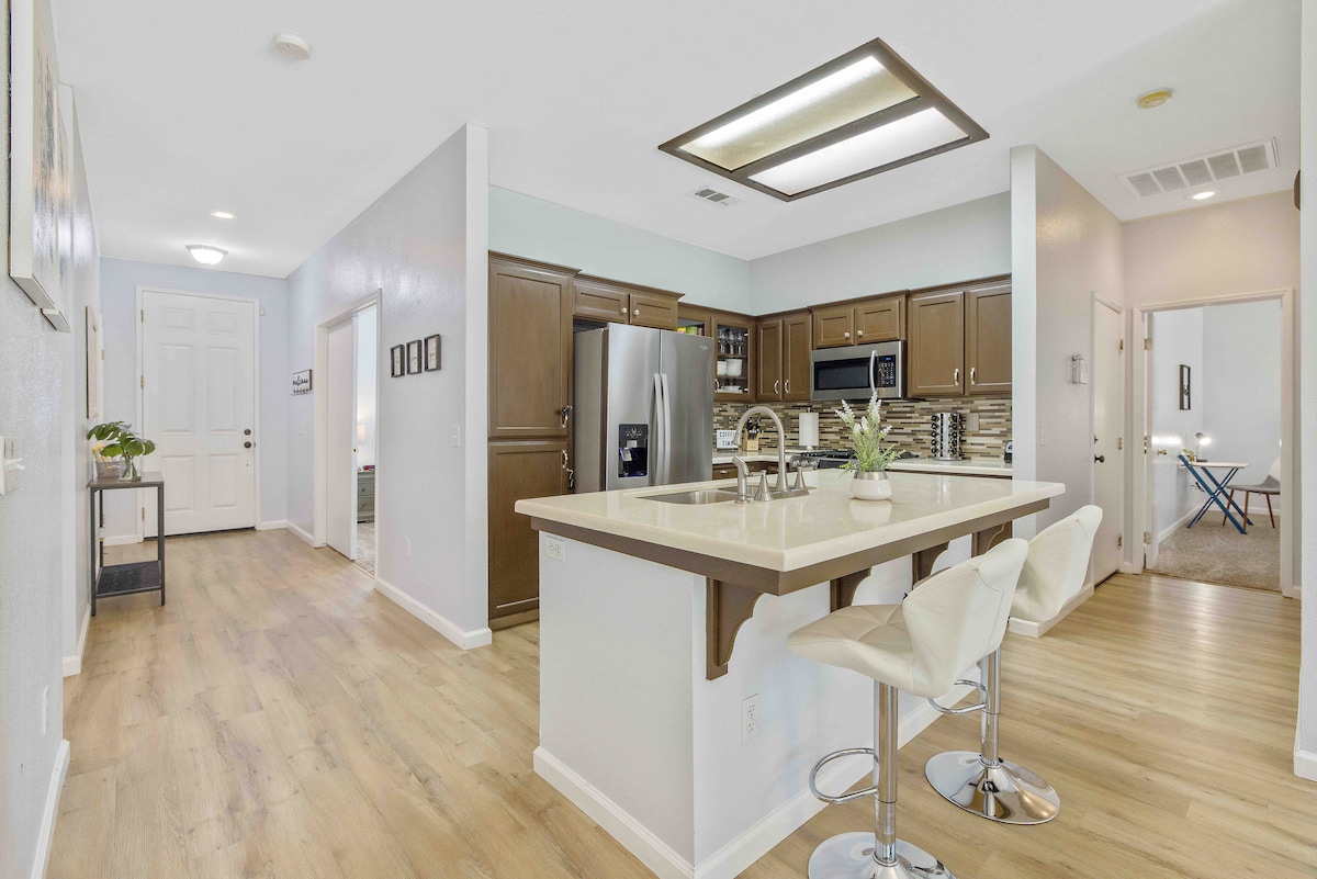Entspanne dich in diesem ruhigen, stilvollen Haus mit 3 Schlafzimmern in Visalia, in dem bequem 6 Personen schlafen können. Der perfekte moderne Ausgangspunkt, um Zentralkalifornien zu erkunden. Es verfügt über einen geräumigen Hinterhof mit zwei Feuerstellen. Nur 45 Autominuten vom Sequoia National Park entfernt, ist es ein idealer Rückzugsort nach einem Tag voller Abenteuer. Genieße eine voll ausgestattete Küche, ein offenes Wohnzimmer und eine gute Anbindung an lokale Restaurants und Einkaufsmöglichkeiten.