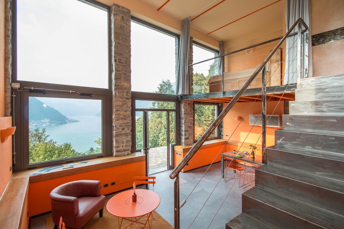 Versteckt an der Seite des Berges, verfügt dieses komplett private und moderne Haus über eine Fensterwand, um den atemberaubenden majestätischen Blick auf den Comer See zu genießen.