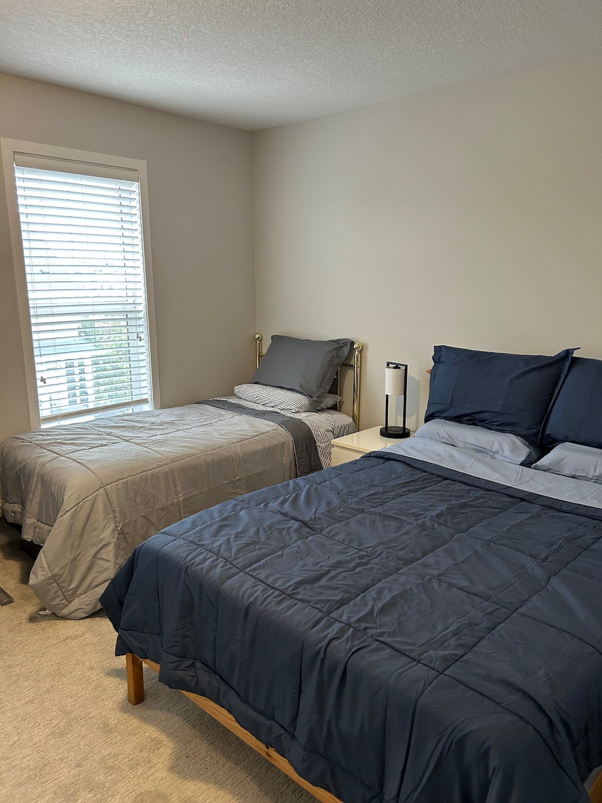 Lehne dich zurück und entspanne dich in unserer stilvollen und völlig privaten Suite direkt an der QE2 im Herzen von Central Alberta. Unser neu entwickeltes Airbnb wurde mit Liebe und Sorgfalt geschaffen, um 2–4 Gäste unterzubringen. Die Unterkunft bietet eine voll ausgestattete Küche mit Essbereich, ein luxuriöses Schlafzimmer mit Queensize-Bett, ein Wohnzimmer mit gemütlichem Kamin/TV und ein ausziehbares Queensize-Bett. Günstig gelegen, nur wenige Minuten von lokalen Sehenswürdigkeiten entfernt. Eigenständiger Check-in/Privatparkplatz