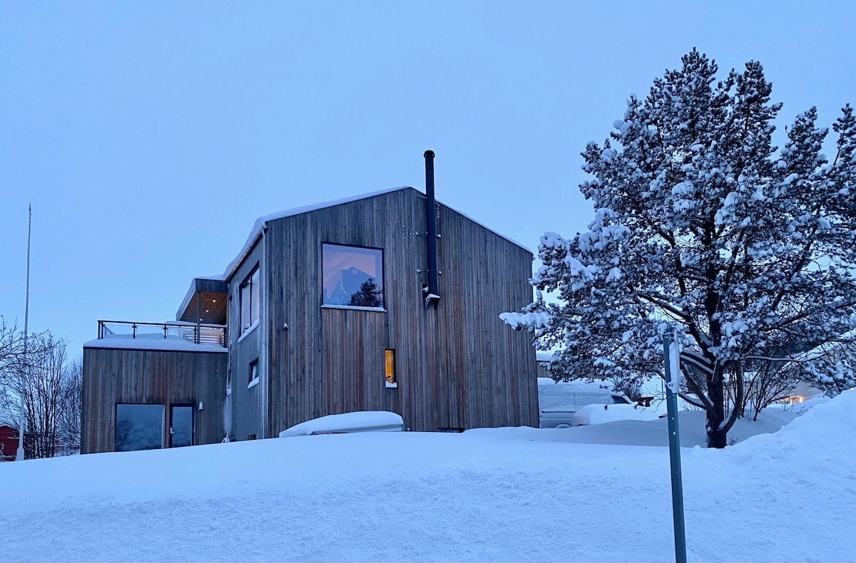 Unser kleines Gästehaus bietet die schönste Aussicht direkt aus dem Küchen- und Schlafzimmerfenster. Das ist es der perfekte Ort, um die Aurora zu sehen und einen entspannenden privaten Urlaub in der Arktis zu genießen. Wir wohnen mit unserem 6-jährigen Sohn und Katze nebenan. Wir sind ab ca. 16:30 Uhr und am Wochenende zu Hause. Extras: Laden von Elektroautos 400 kr/ Flughafen- oder Stadttransfer 500 kr/ Hot Tub 1200 kr oder 100€ für 2 Tage / Sauna 500 kr oder 40€ pro Tag (nur Barzahlung)