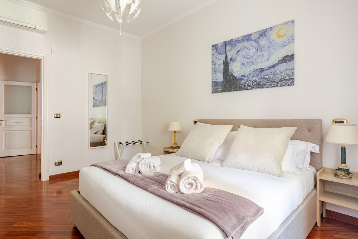 Mit dieser Unterkunft im Zentrum können Sie, Ihre Familie oder Ihre Gruppe von Freunden in wenigen Minuten zu Fuß die U-Bahn erreichen und in 10 Minuten das Kolosseum/Rom Termini/Olympiastadion erreichen. Die Gegend ist toll und mit Restaurants, Pizzerien, Bars und Supermärkten ausgestattet. Unsere Wohnung ist mit zwei separaten Zimmern, einem Wohnzimmer, Bad und Küche ausgestattet. Die Smart-TV-Fernseher ermöglichen es Ihnen, Ihrer Lieblingsserie zu folgen. Klimaanlagen Klimaanlage und Heizung.