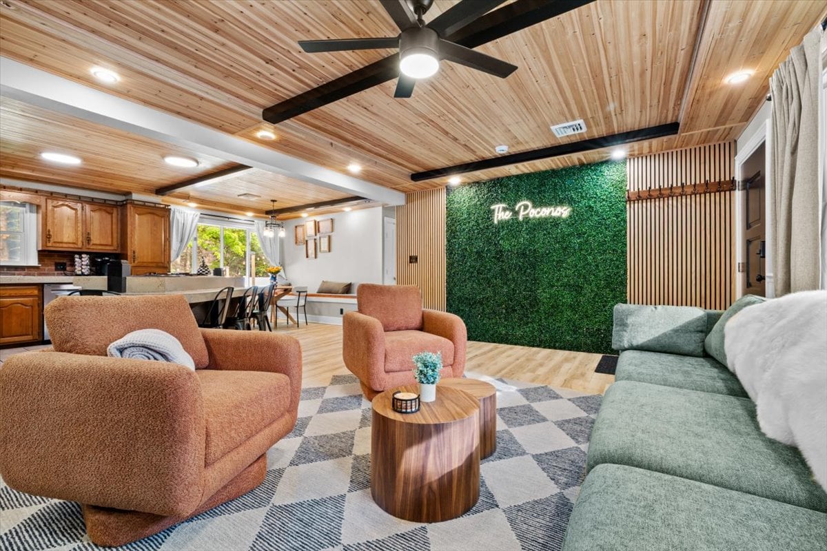Entfliehe den Grenzen der Stadt und erlebe eine perfekte Balance aus Unterhaltung und Entspannung für die ganze Familie, umgeben von der natürlichen Schönheit der Poconos Mountains. Ob drinnen oder draußen, hier ist für jeden etwas dabei. Spiele eine Runde Billard, entspanne dich in einem luxuriösen Whirlpool und röste S'mores an der Feuerstelle. Erkunde die örtlichen Seen, genieße die Annehmlichkeiten der Gemeinschaft und komme dann nach Hause, um dich in dieser atemberaubenden Berg-Oase zu erholen. Schaffe mit uns bleibende Erinnerungen in den Poconos & erfahre unten mehr!