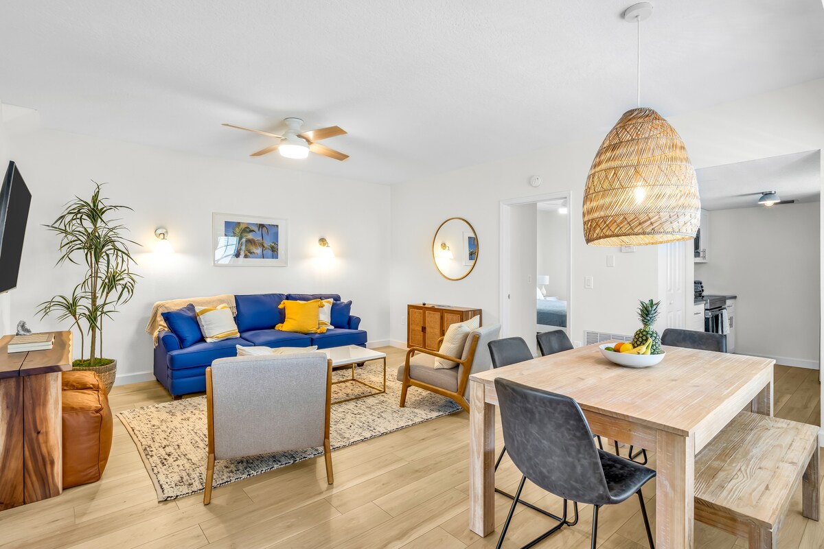 Welcome to beautiful Siesta Key, the #1 beach in the country! Gorgeous newly renovated one bedroom condo within a 5 min walk to the powdery white sandy beach and stunning sunsets. Also next to restaurants, bars, kayak & jet ski rentals, and much more! Contact for monthly rentals available. Experience this modern oasis: • Chic Living Room • Quartz Kitchen Countertops • King Size Mattress • Beach gear • Wifi • Private Parking • Smart TVs • Screened-in Patio • Coin Laundry room on premises