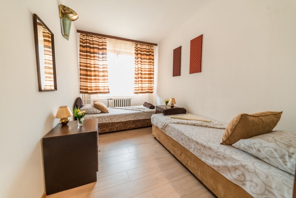 Charmante 64m² große, klimatisierte Wohnung, im ersten Stock, liegt in der Nähe aller Annehmlichkeiten (Geschäfte, Apotheke) und nur wenige hundert Meter vom SPA „Aqua Bristol“ entfernt. Eine Wohnung perfekt für Familien, Paare oder Geschäftsreisende. Mit ihrem gut durchdachten Raumkonzept bietet sie ein geräumiges Schlafzimmer, ein helles Wohnzimmer und eine voll ausgestattete Küche. Für Familien mit Kindern steht ein Babybett zur Verfügung, um einen stressfreien Aufenthalt zu gewährleisten.