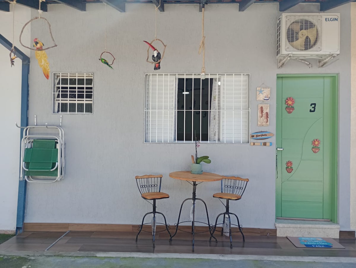 Haus mit zwei Doppelzimmern, eines mit Klimaanlage und das andere mit Deckenventilator, Wohnzimmer und offene Küchen mit Herd, Kühlschrank, Küchenutensilien, mit einem internen und einem externen Badezimmer im Grillbereich, Garage. Mit einfachem Zugang zur Autobahn und 15 Minuten von den Stränden Grande, Toninhas, Tenório, in der Nähe von Supermarkt, Bäckerei, Apotheke. UNSER HINTERHOF WIRD NUR MIT UNS GETEILT, die im Haus vorne und in der separaten Garage wohnen. Wir stellen keine Handtücher und Decken zur Verfügung.