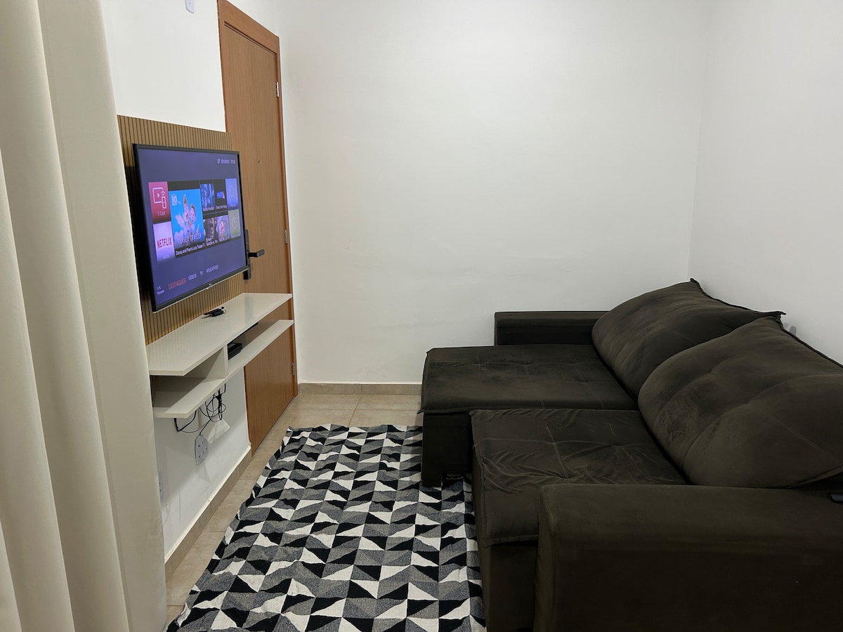 Apartamento Flat com 2 ambientes, sendo ampla suíte e uma ampla sala com cozinha americana. Serviço diário de limpeza e camareira incluso no valor. Flat extremamente limpo e aconchegante. Prédio possui ótima piscina com sauna disponíveis sem custo extra. Academia disponível e incluso no valor. Internet Wi-Fi disponível e incluso. Garagem fechada para 1 carro disponível e incluso.