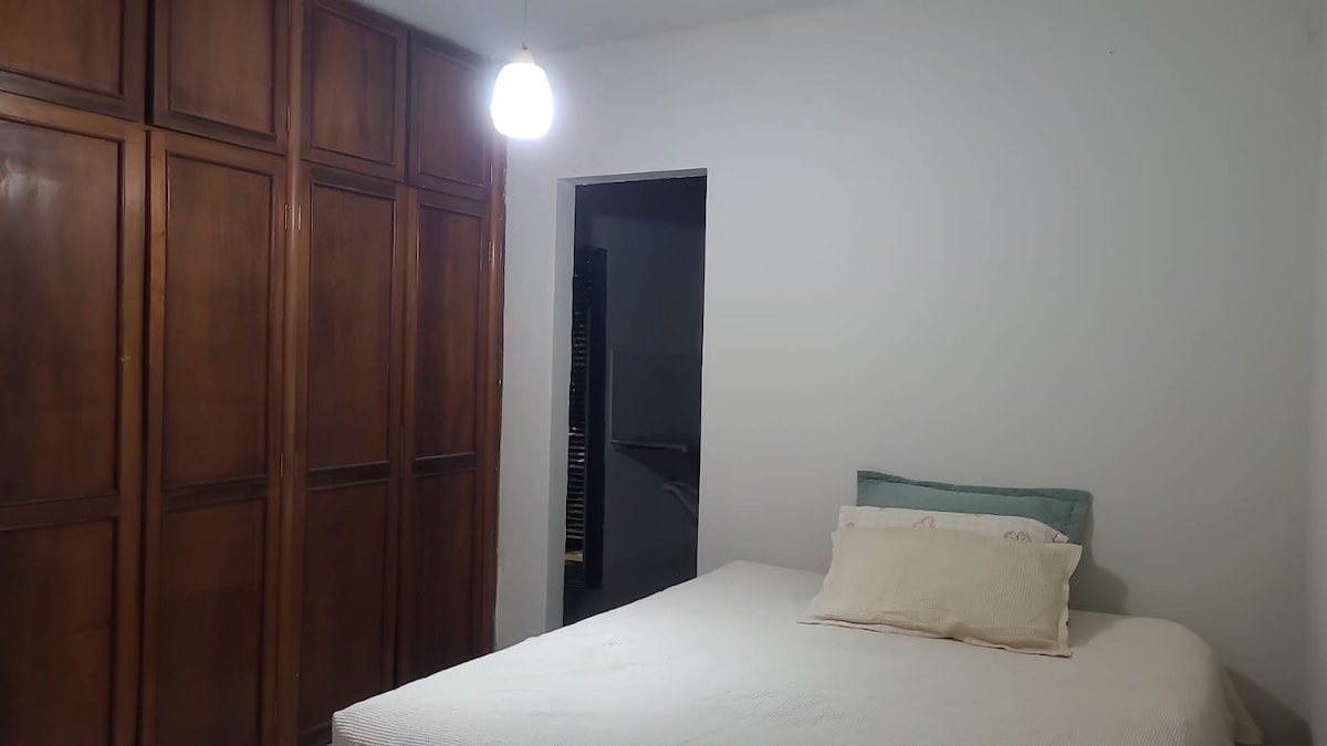 Genieße die Einfachheit dieses ruhigen und gut gelegenen Ortes mit frischem Obst der Saison. Haus mit 2 Schlafzimmern, Ess-/Wohnzimmer mit Smart-TV , Zugang zu Globoplay, Esstisch, Schlafsofa. Komplette Küche und Waschküche. Bett- und Badeanzüge. Das Badezimmer verfügt über eine gehärtete Glasbox und eine elektronische Dusche, um die ideale Temperatur deiner Badewanne zu ermöglichen. Ampla-Balkon mit Blick auf den Hinterhof. Hinweis: Die Höhe des Garagentors beträgt 2,20 m